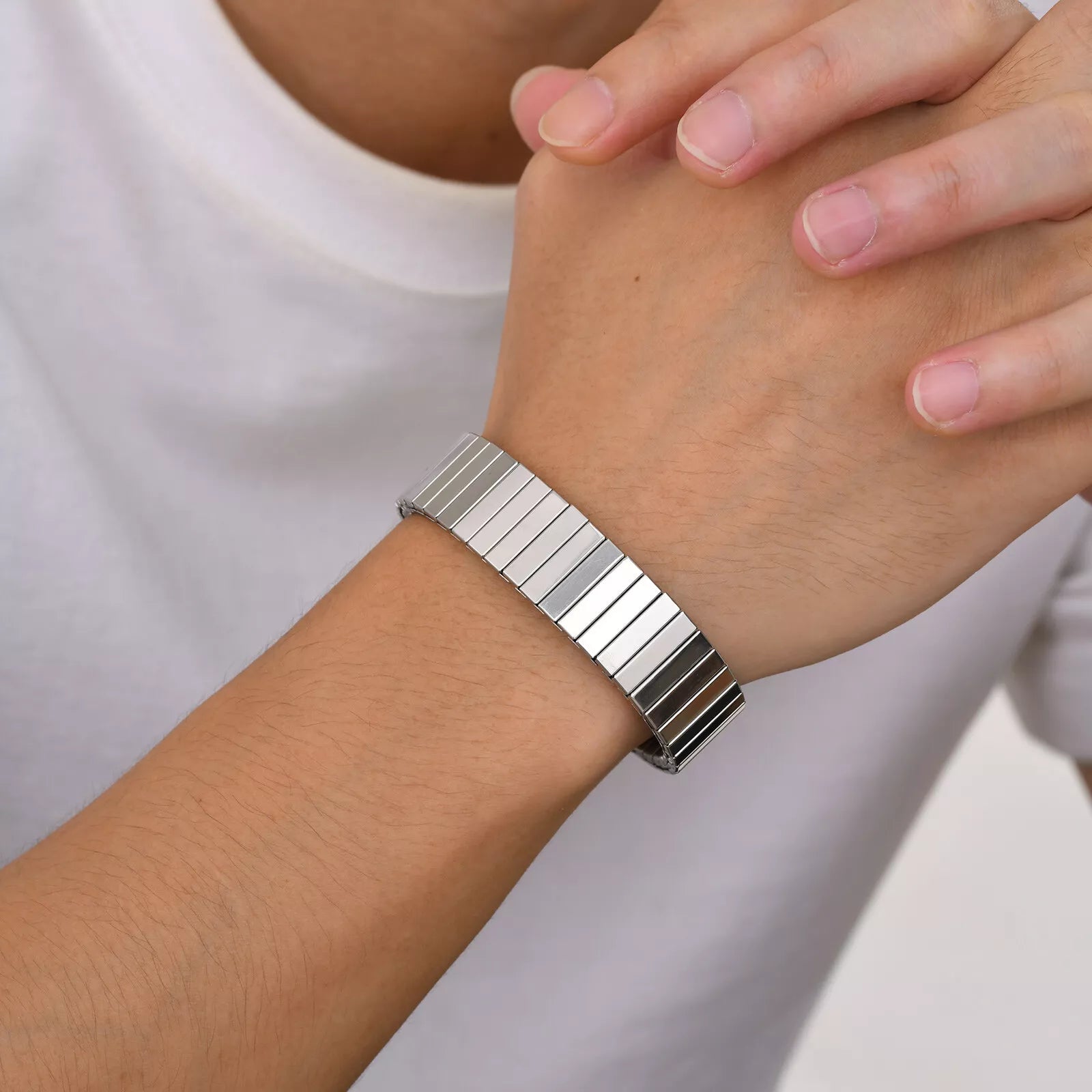 Sleek, minimal, and effortlessly cool — the Apollo Stretch Band is the ultimate nod to retro-futuristic style. Inspired by vintage watch bands, this bracelet features a clean, high-polish stainless steel build with a smooth, flexible stretch fit that conforms comfortably to your wrist.