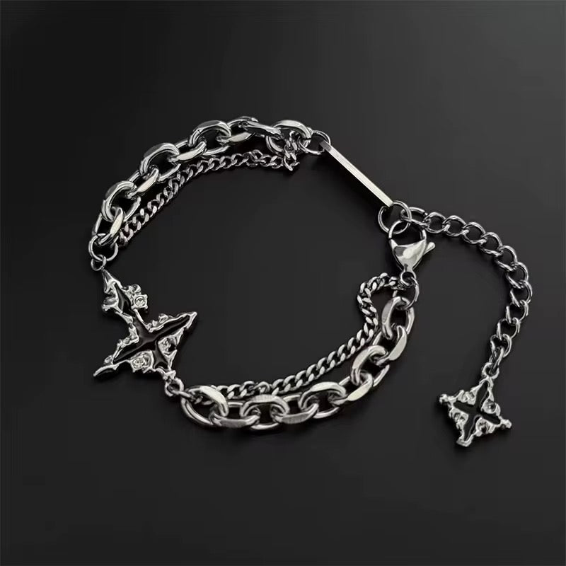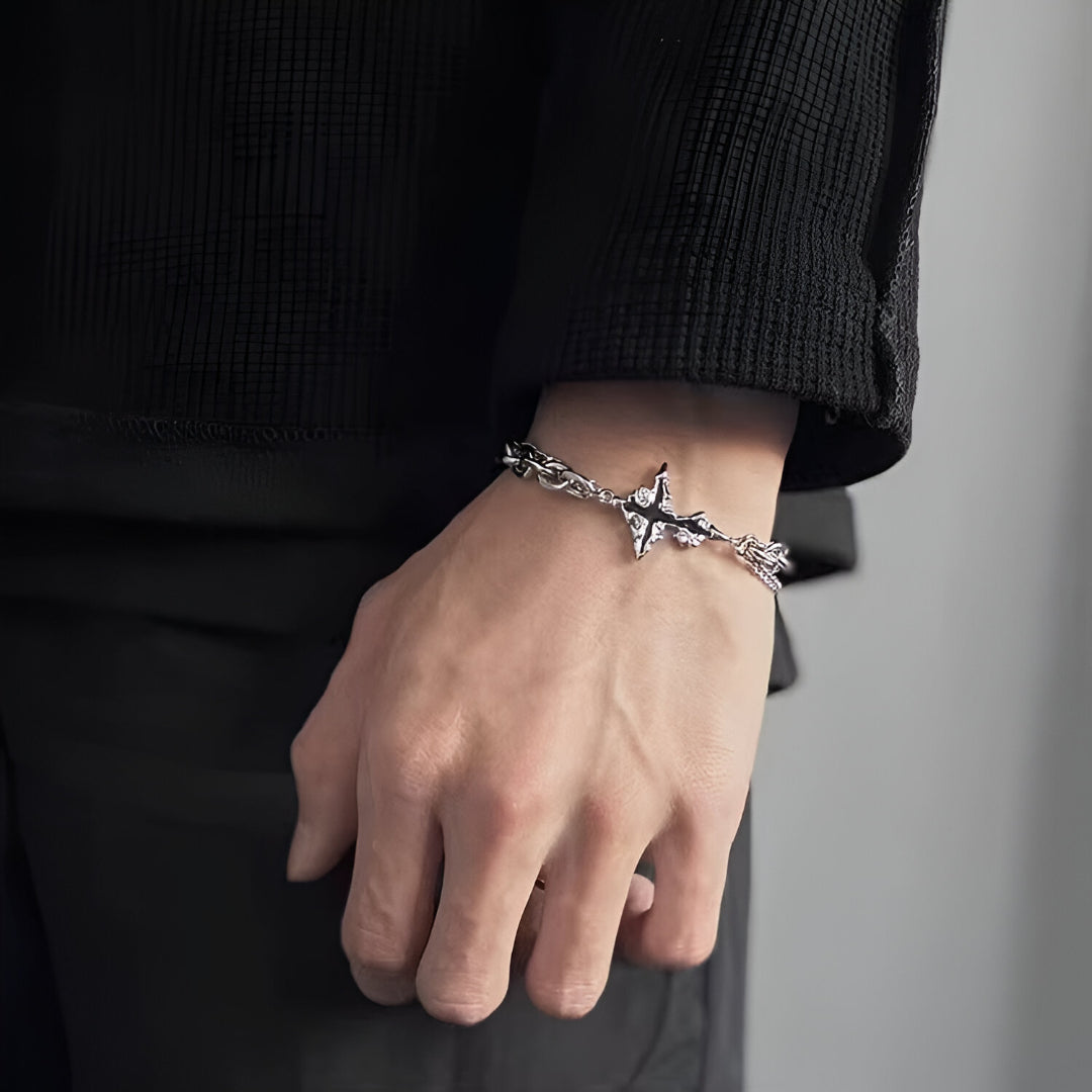 Command attention with the Blackthorn Chain Bracelet – a bold fusion of punk rebellion and everyday resilience. Featuring a rugged chain design with distressed cross accents, this piece brings unapologetic edge to any outfit.
