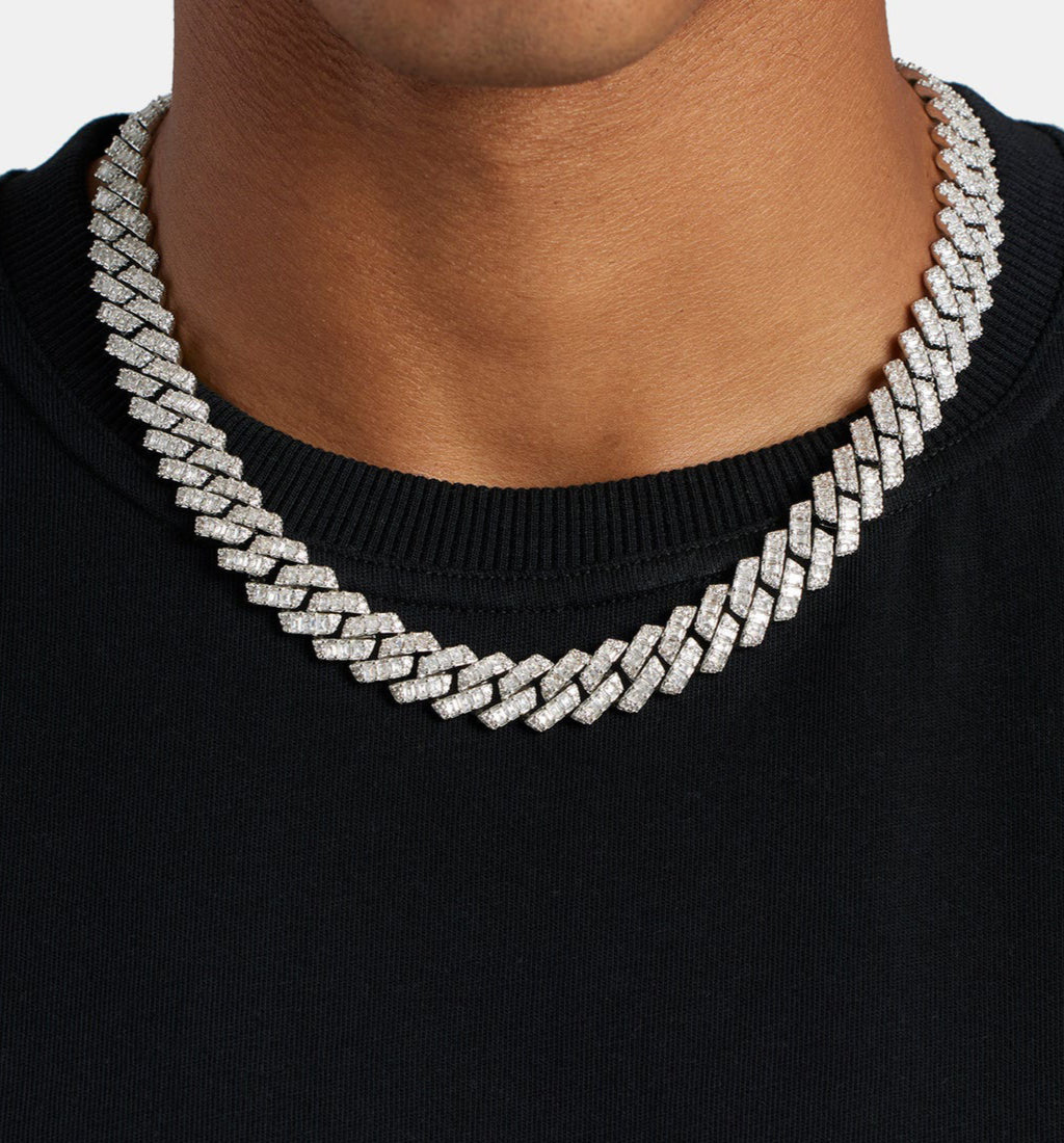 Featuring high-quality Cubic Zirconia (CZ) diamonds in a dazzling micro-pavé setting, this 18k silver-plated Cuban link chain delivers maximum shine and impact. Made from durable alloy and crystal rhinestones, it’s the ultimate iced-out necklace for men who want to elevate their streetwear or special occasion looks with serious bling.