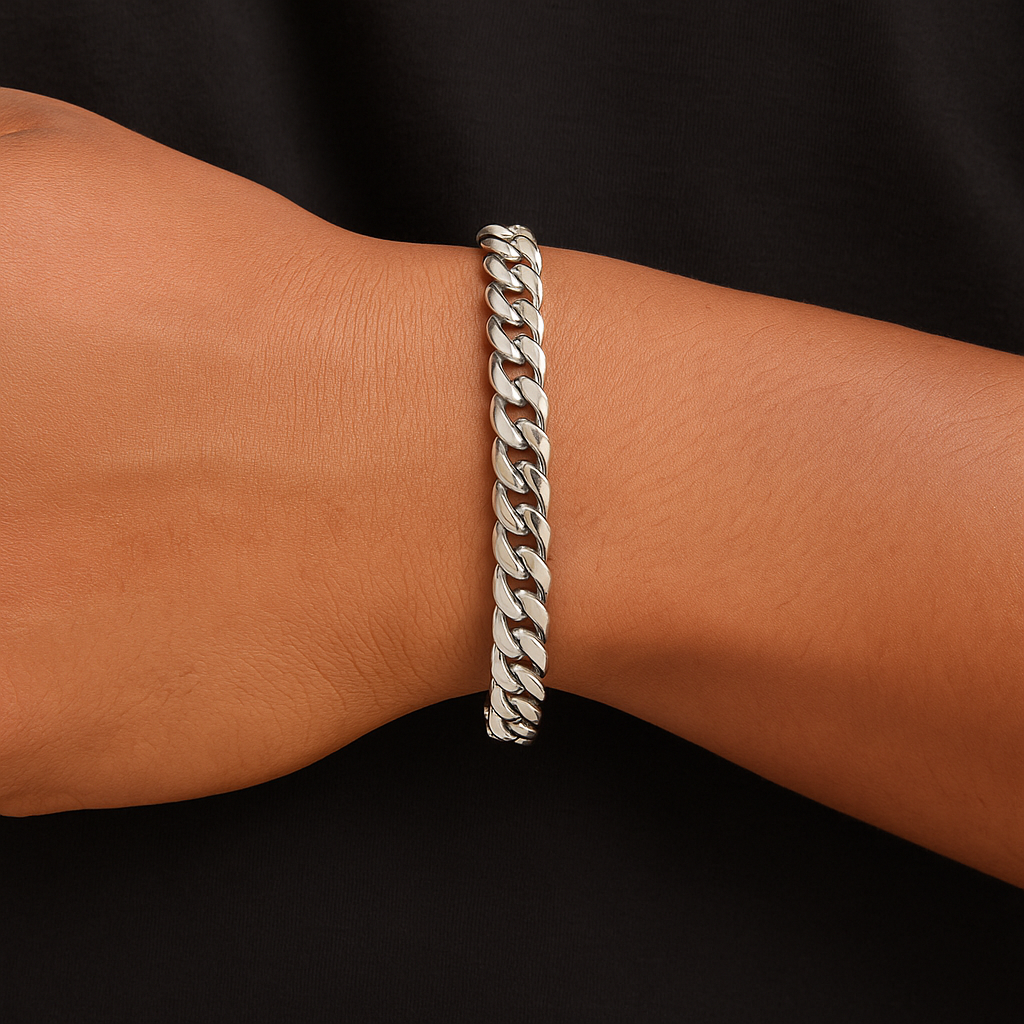 Step up your accessory game with the Jaxon Cubic Chain Bracelet – a bold blend of structure and shine. With its 9mm width, this bracelet delivers a statement look without going over the top.